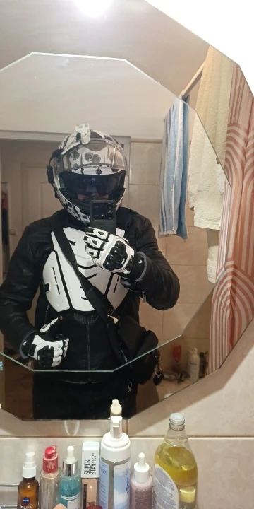 Arrived on time and in good condition, easy to put on and adjust. Solid construction with ample padding with bonus of looking like a stormtrooper